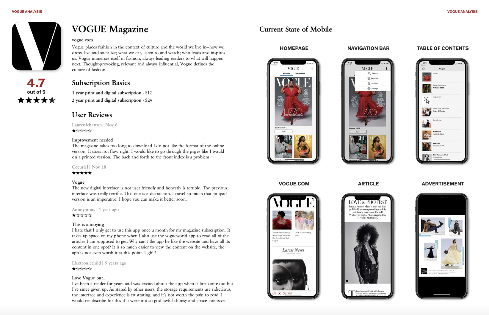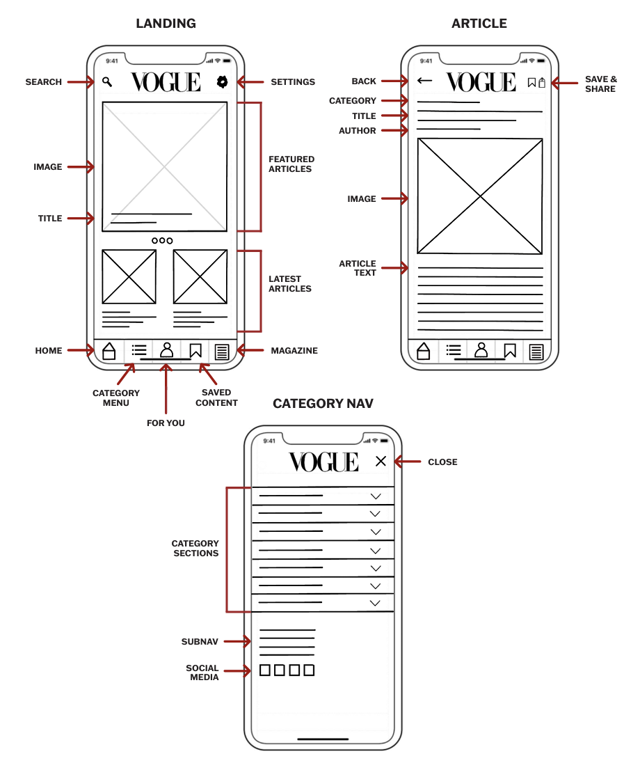 The process began with an in-depth exploration of Vogue’s brand to identify elements that set it apart. This included evaluating Vogue’s desktop site and mobile apps to pinpoint strengths and areas for improvement.